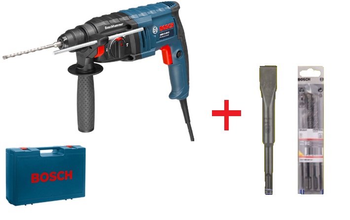 Set para profesionales: martillo perforador GBH 2-20 D + set de 3 brocas + 1 cincel puntiagudo en maletín estándar.